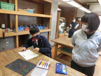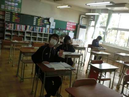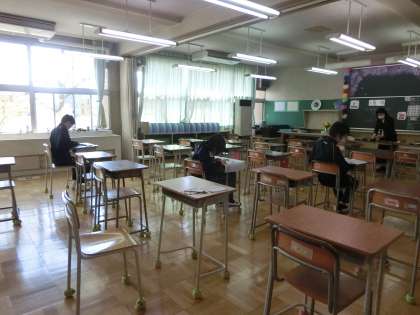 I組も3年生がいなくてちょっと寂しいな。家庭科の刺繍は来年度も引き続き頑張りましょう。