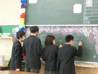修了式7 3月24日(金) 公開日 2023/03/26 更新日 2023/03/26 校長室より I組最後の学活です。 黒板に、先生達には内緒でメッセージを書きました。 気付いてくれるかな? いいね(0)