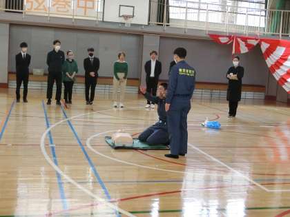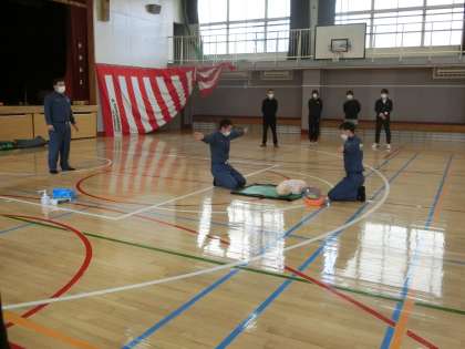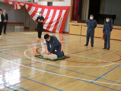 次に、消防署の方に、模範演技をしていただきました。