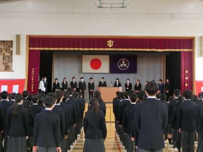 「先輩方に教えていただいた、たくさんのことを胸に、1年後には大きくたくましい背中になれるよう、在校生一同、決意を新たに頑張っていきます。」という決意のことばがありました。
