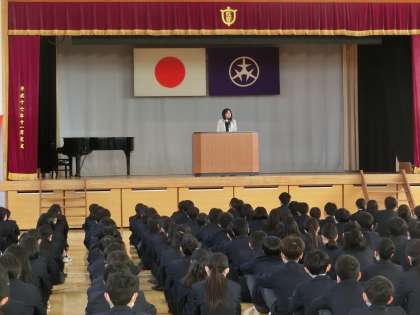 さきほど、着任式が終わって弦巻中学校に新しい12名の教職員の皆さんを迎えることができました。出会いを大切にしてください。