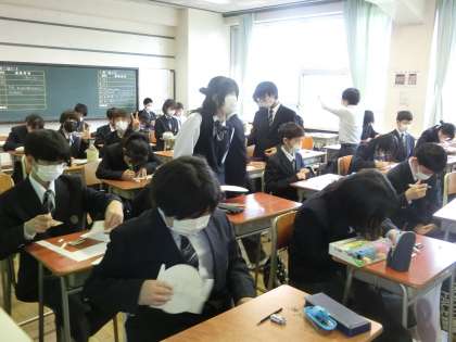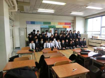 ちょうどクラス写真を撮影中。みんな笑って!!