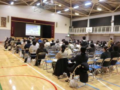 保護者会1 4月15日(土) 公開日 2023/04/17 更新日 2023/04/17 校長室より 1学期第1回保護者会です。たくさんの保護者のみなさまにご出席いただき、ありがとうございました。全体会の前に生徒会役員がつくった学校自慢の動画を流しました。 いいね(0)