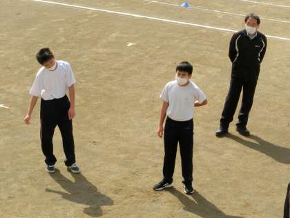 昨日18日(火)1時間目のI組の体育でした。良い天気の中ランニングから始まりました。