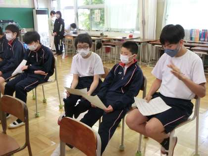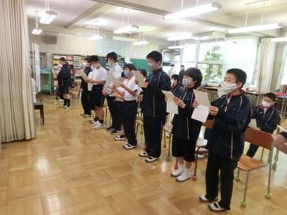 I組校歌の練習中。大きな声で美しい歌声が響いていました。