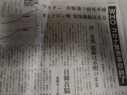 そして、長きに渡り、わたしたちの生活を一変させた新型コロナウイルス感染症も世界保健機関が緊急事態の終了を宣言し、日本でも明日から5類に移行となります。