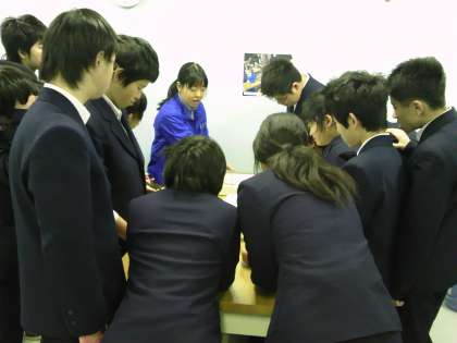 体験学習で職員の方から説明を受けています。