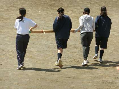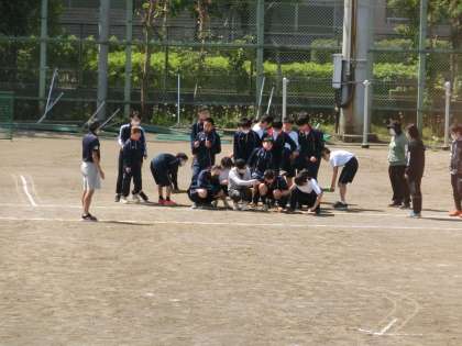 I組体育の授業。体育大会の学年種目の練習です。