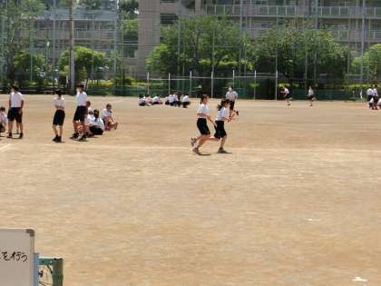 クラス対抗リレー。バトンパスで勝敗が分かれます。