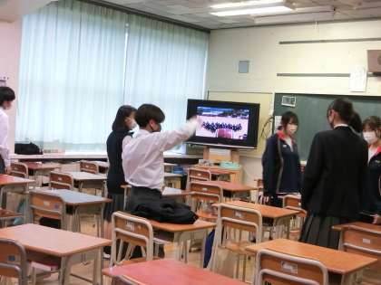 応援団は、色別に分かれて、ビデオを見ながら、練習を行っていました。