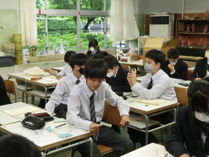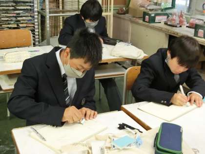 1年生美術の授業。消しゴムスタンプづくりです。