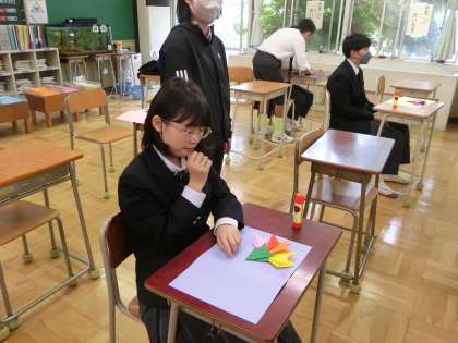 I組折り紙教室1 5月13日(土) 公開日 2023/05/15 更新日 2023/05/15 校長室より I組では、学校運営委員長の土田さんをお招きして、折り紙教室を行いました。日曜日の母の日に向けて、カーネーションの折り紙で、メッセージカードづくりです。 いいね(0)
