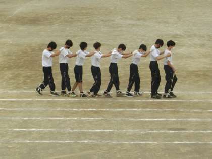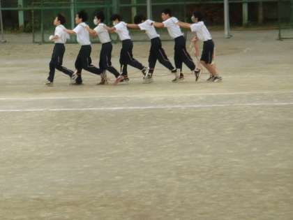 ロープを付けて、いよいよ本格的に練習がはじまります。息を合わせて「1・2・1・2」怪我をしないように頑張ってください。