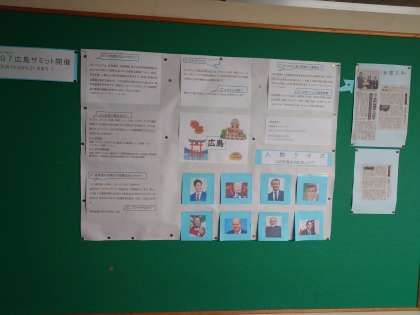 核兵器廃絶を目指して、様々な重要な話し合いがあります。広島で行う意義をあらためて考えてみましょう。図書室に、各国首相クイズがありました。誰がどこの国の首相かわかりますか?
