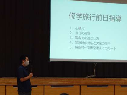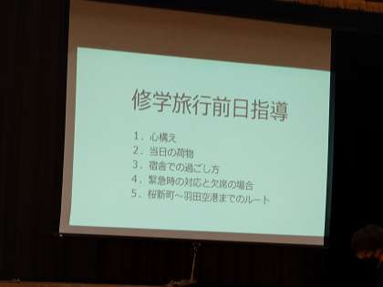 6時間目、明日からの修学旅行の事前指導です。