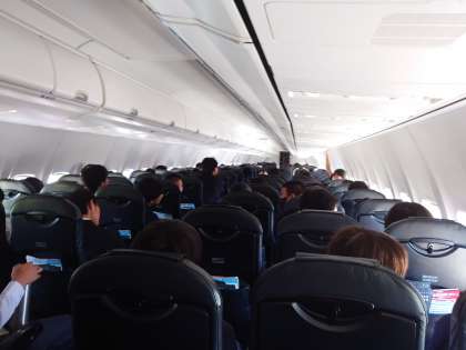 長崎空港に到着しました。定刻より少し遅れましたが、無事に着陸しました。