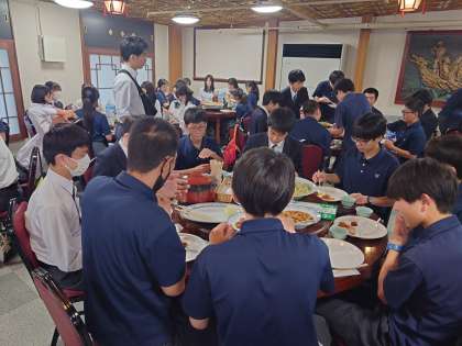 修学旅行最初の食事です。