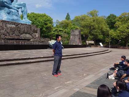 九州長崎修学旅行一日目36 5月24 日(水) 公開日 2023/05/24 更新日 2023/05/24 できごと はじめの言葉の中に、G7のゼレンスキー大統領の話を引用していました。 わたしたちがいる社会では、戦争の歴史をなしに語れないが、これからを生きる人たちは戦争のない歴史にすることはできると。 代表生徒4人が「平和宣言」を読み上げました。 千羽鶴を奉納しました。 いいね(0)