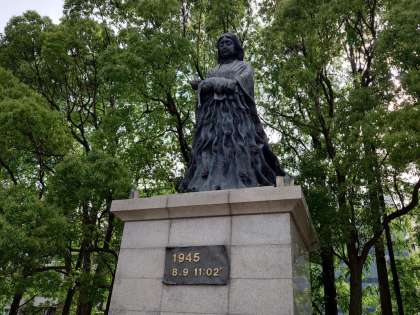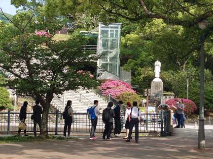 九州長崎修学旅行一日目47 5月24 日(水) 公開日 2023/05/24 更新日 2023/05/24 できごと フィールドワークを終えて、平和祈念像まで戻ってきました。 どうでしたか? 明日は、各班での班別行動になります。 自分たちだけで、自分たちが決めたコースを回ります。スタートは、原爆資料館からになります。 資料館を見学して、出島に行ったり、グラバー園、稲佐山、亀山社中などなど長崎の文化と歴史、自然と、たくさん見て、感じて、学んできてください。 いいね(0)