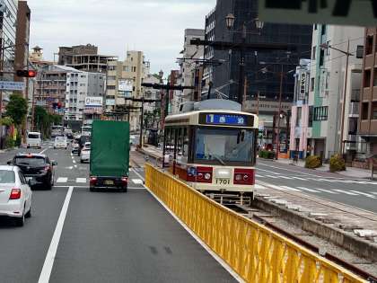長崎市内をバスで運行中。