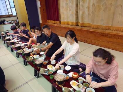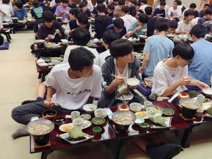 夕食中。