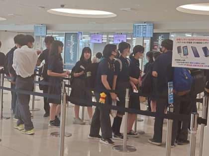 九州長崎修学旅行三日目38 5月26日(金) 公開日 2023/05/26 更新日 2023/05/26 できごと 保安検査場にいます。 今のところ予定通りです。みんなで帰ることができそうです。 飛行機は満席ですが、定刻通り出発しそうです。 いいね(0)