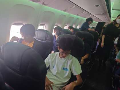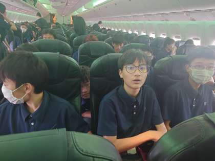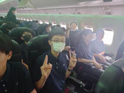 機長さんのアナウンスで、弦巻中学校が紹介されました。オセワになります。