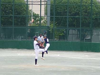 中体連野球大会2 5月28日(日) 公開日 2023/05/28 更新日 2023/05/28 できごと 試合開始。 一回の表、相手チームの攻撃です。 2点先取されましたが、よく守りました。 いいね(0)