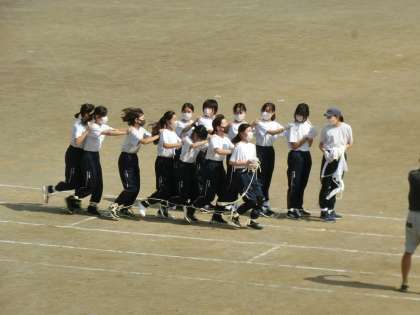 2年生のムカデ競争も練習するたびに上手になってきています。