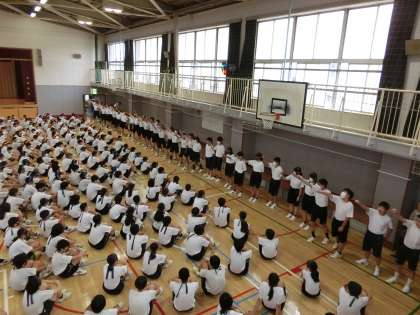 応援団長から全校生徒へのあいさつ。大きな声で迫力がありました。