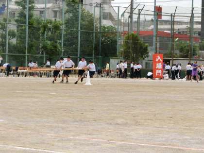 大きな竹の棒を持って、4人の気持ちを合わせながら、回って、飛んで…。