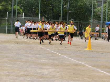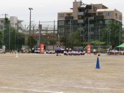 …一番初めに竹の棒が立ったのは、D組。紫でした。