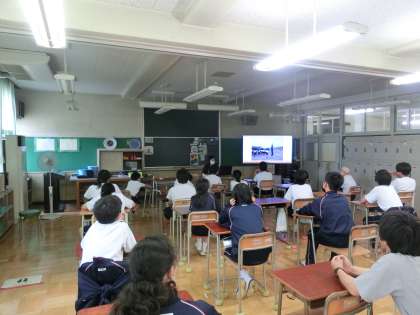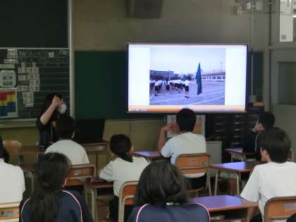 I組では、写真を見ながら体育大会の振り返りをしています。