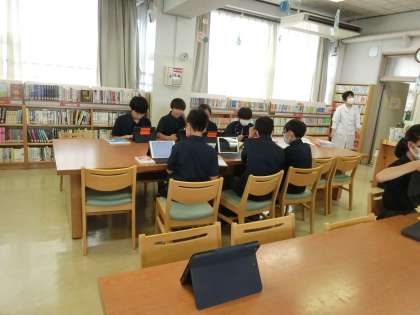 花田先生の国語の授業は、職業調べ学習を図書室と教室で行っていました。
