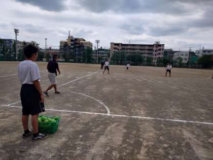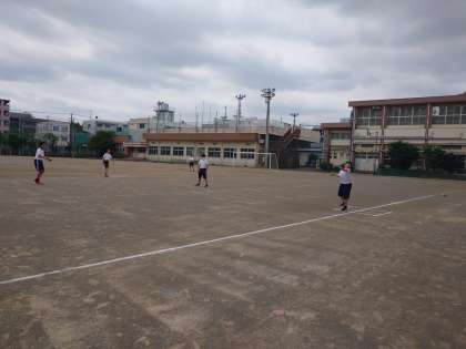 2チームに分かれて、試合形式の練習です。
