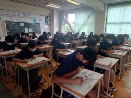 期末テスト三日目4 6月20日(火) 公開日 2023/06/20 更新日 2023/06/20 できごと これで、最後!!残り一分までやりきりましょう。 下校は12時です。 部活動の再登校は2時です。 いいね(0)