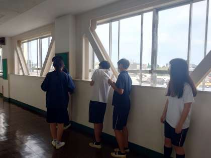教室では、長崎の見学地を発表中。廊下でも練習中。頑張れ!!