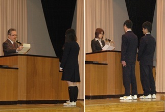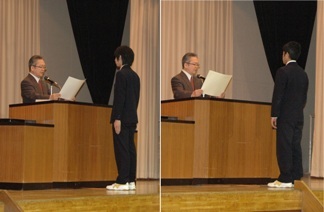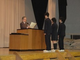 3月15日(木)、卒業式予行のあと、各種表彰と弦和会から記念品の贈呈が行われました。体育優良生徒・体育努力生徒・優良生徒・吹奏楽など、みんなの模範となる取り組みを積み重ねた成果を、卒業を前に表彰されました。受賞者のみなさん、本当におめでとうございます。高校でも頑張ってください。