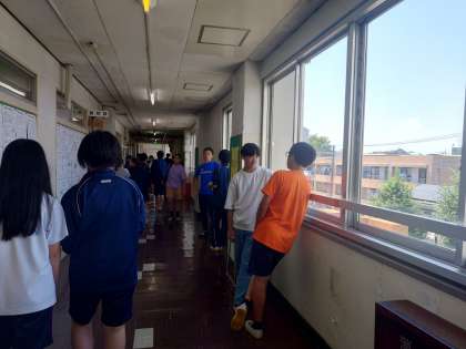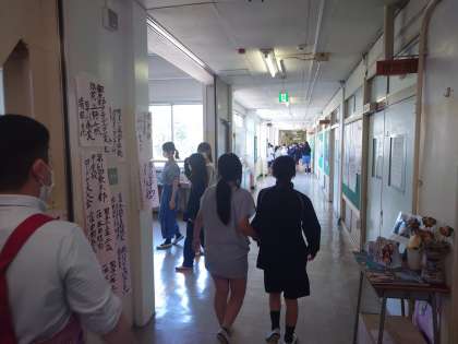 カジュアルウィーク中の弦中では、様々な服装で登校しています。