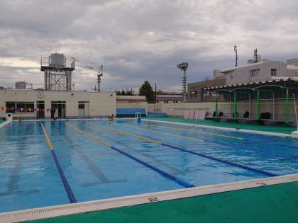 校庭では、サッカー部、陸上、野球部。プールでは、大会に向け、水泳部もファイト!!
