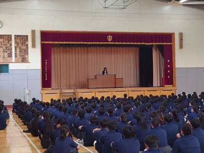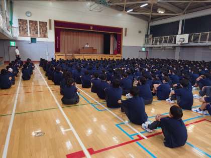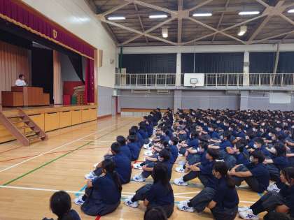 終業式1 7月20日(木) 公開日 2023/07/20 更新日 2023/07/20 できごと 一学期終業式を行いました。まず終業式の前に、生活指導主任の坂本先生から整列指導を含めて、お話がありました。 いいね(0)