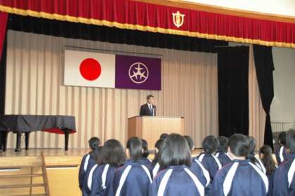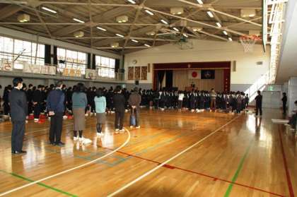 3月21日(水)、1・2年生だけで全校朝礼が行われました。3年生が卒業したため、3年生場所がポッカリと空いていて…、その空間に在校生は何を感じたのでしょうか。これからは自分達が弦巻中学校をリードしていかなくては…、そんな思いを抱いた2年生も多かったのではないでしょうか。学年が上がるということは、責任が増すということです。この春休みは上級生になるという自覚をもって生活して下さい。期待しています。