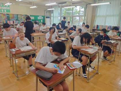そして、一年生はとI組は好きな日本語、2年生は人に伝えたい日本語、3年生は世界に広めたい日本語をテーマにポスターを作ります。