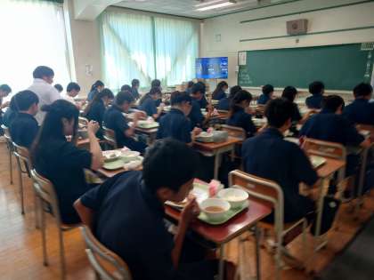 昨日から給食が始まりました。
