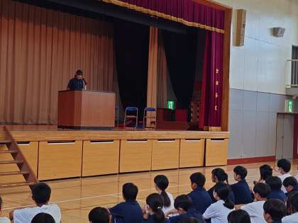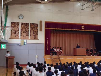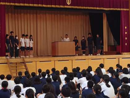 生徒会朝礼2 働くこと生きること 9月5日(火) 公開日 2023/09/07 更新日 2023/09/07 できごと 準備は生徒会役員が行いました。 コロナ禍でずっと全校生徒の対面での生徒会朝礼は実施されなかったので、役員も初めての試みでした。 でも、しっかり準備して運営してくれました。 いいね(0)