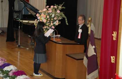 4月9日(月)、新しい標準服に身を包んだ新入生126名が入学しました。「ACTIVE SCHOOL 弦巻中!」へようこそ! 1年生の心の中は、ちょっぴりの不安と「中学校ではこれを頑張ろう」というやる気いっぱいの決意に満ちあふれていることと思います。中学校に入学したのを機会に、失敗をおそれず、様々なことに挑戦し、自分の中に「宝物」をつくる3年間にしてほしいと思います。1年生の皆さん、入学おめでとうございます。