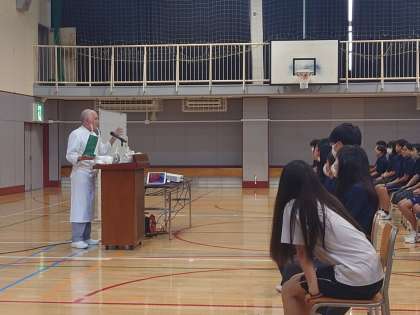 2年生職業講話2 9月8日(金) 公開日 2023/09/09 更新日 2023/09/09 できごと ブロートハイムの社長さんは、パン職人として今も毎日美味しいパンを作っています。今朝作ったパンを持ってきてくださいました。日本のパンは世界一。外国と日本のパンの違いや様々なパンについて細かく説明をしていただきました。 いいね(0)