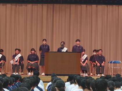 生徒会役員選挙立会演説会10 9月13日(水) 公開日 2023/09/14 更新日 2023/09/14 できごと 立会演説会続きます。 立候補者も応援演説者も、しっかりと自分たちの思いを伝えました。 聞いている生徒も、真剣に聞いていました。 いいね(0)