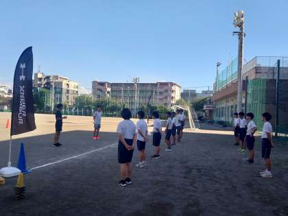 区陸に向けて特別練習1 9月13日(水) 公開日 2023/09/14 更新日 2023/09/14 できごと 10月5日の世田谷区中学校陸上競技大会に向けて、約20名の生徒が登録されました。毎日陸上部と練習をしています。 特別練習として、アテネオリンピックに出場した、伊藤さんとアンダーアーマーの会社の方がきて、一緒に練習をしてくれました。走り方の基本を教わり、フォームなど見直す機会となりました。 いいね(0)