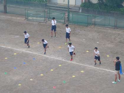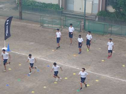 区陸に向けて特別練習3 9月13日(水) 公開日 2023/09/14 更新日 2023/09/14 できごと 走り方の基本を教わったり、フォームの動画をとってお互いに見合い、自分の課題に気づくこともできました。 いいね(0)